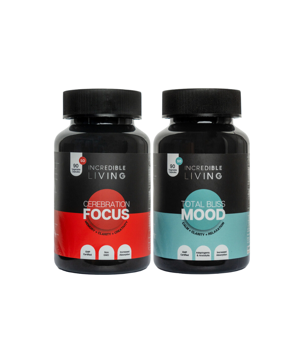 Boost your mental clarity, focus, and overall well-being with the Incredible Living Day & Night Bundle —a powerful combination of Cerebration Focus and Total Bliss Mood designed to optimize brain performance and emotional balance.