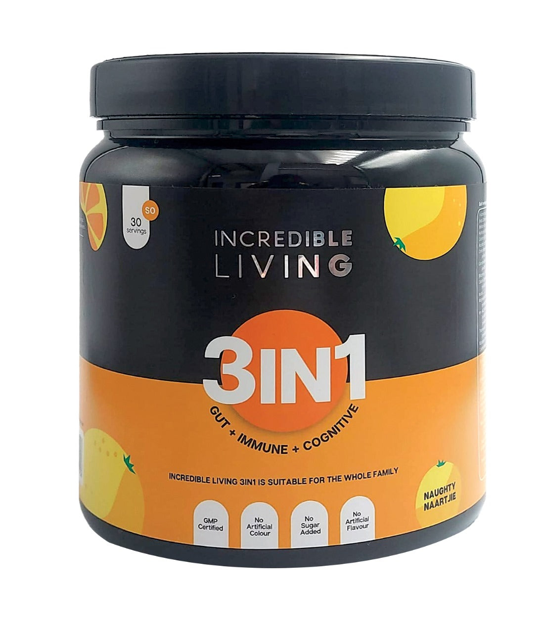 We are extremely proud to say that Incredible Living 3 in 1 contains 23 active ingredients and covers your critical daily nutritional needs. By focusing on gut health, immune assist and cognitive health, this is truly a holistic product that fulfils most of the body’s most important needs for the whole family.